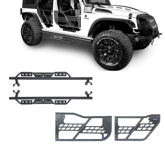 4 Door Side Steps & Tubular Half Doors Combo(07-18 Jeep Wrangler JK)-LandShaker