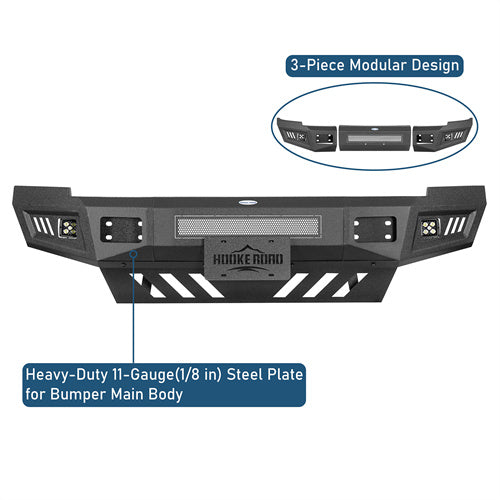 Heavy Duty Construction. Constructed from high tensile 11-gauge (1/8 inch) steel for the main body and 9-gauge (5/32 inch) steel for the mounting structure, the Guardian II bumper ensures long-lasting durability. The textured black powder coat finish, combined with a premium E-coating process inside, provides excellent resistance to rust and corrosion, maintaining its rugged appearance even under harsh weather conditions. The bumper's solid construction and high-quality finish make it a reliable choice for both on-road and off-road use, giving your truck a bold look while keeping it protected.