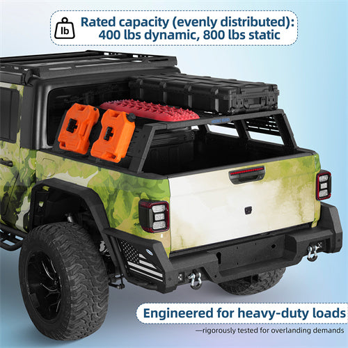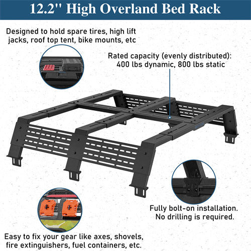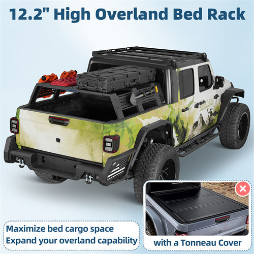 12.2" High Overland Bed Rack For 2020-2025 Jeep Gladiator JT / 2005-2023 Toyota Tacoma(5' Bed) / 2019-2025 Ford Ranger - Landshaker4x4