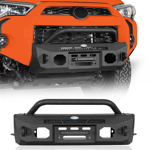 Off-Road Style and Function. The Blink Stubby Front Bumper is designed to offer both rugged styling and robust protection for your 4Runner, ensuring it's ready for any adventure. Featuring a low-profile grille bar guard, this bumper not only enhances the off-road aesthetic but also provides added defense against impacts and debris. The inclusion of high-strength D-ring mounts and a winch plate capable of accommodating up to 12,000 lbs further reinforces its functionality for recovery operations. Additionally, the bumper features a 72W LED spotlight bar that enhances visibility during nighttime excursions, making it an ideal choice for off-road enthusiasts.