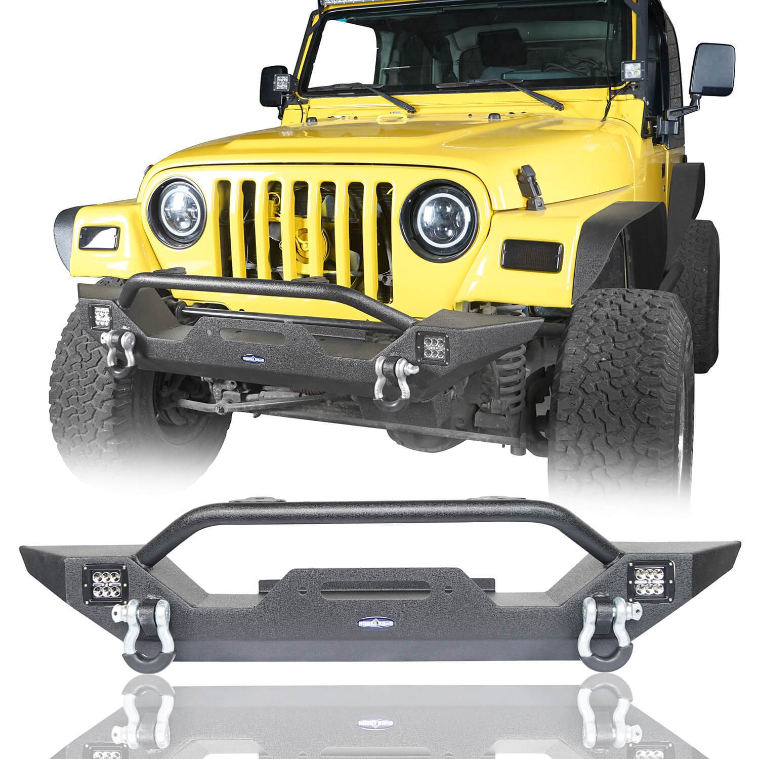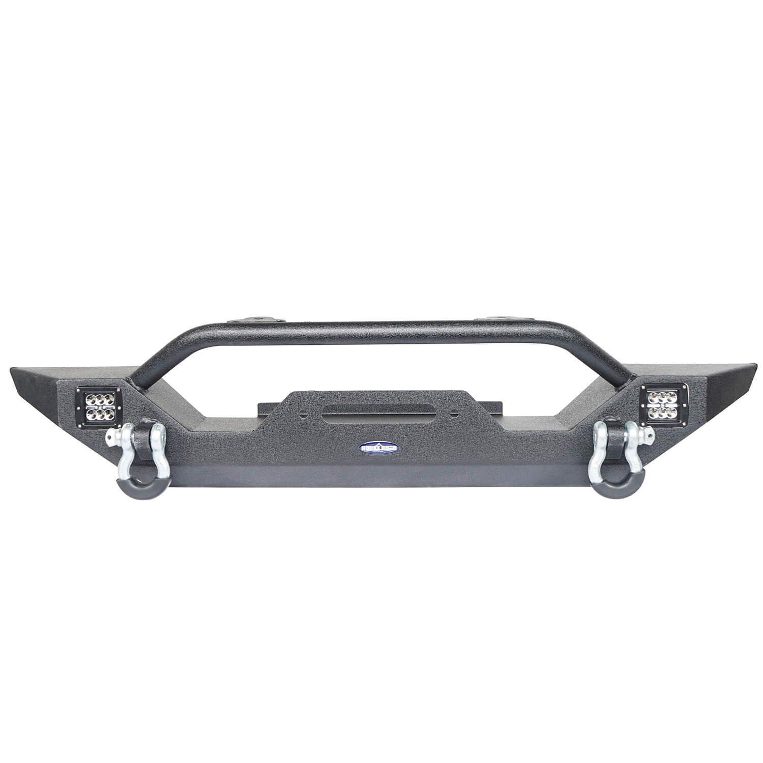 - DIFFERENT TRAIL FRONT BUMPER - Heavy-duty 11-gauge(1/8 Inch) steel plate and 1.50" x 0.06" steel tube construction;High strength D-Ring mounts w/D-Rings included;Built-in winch plate for up to 12,000lb. winch LED accent lighting;Two stage textured black powder coat finish; Bumper weight: about 40 lbs