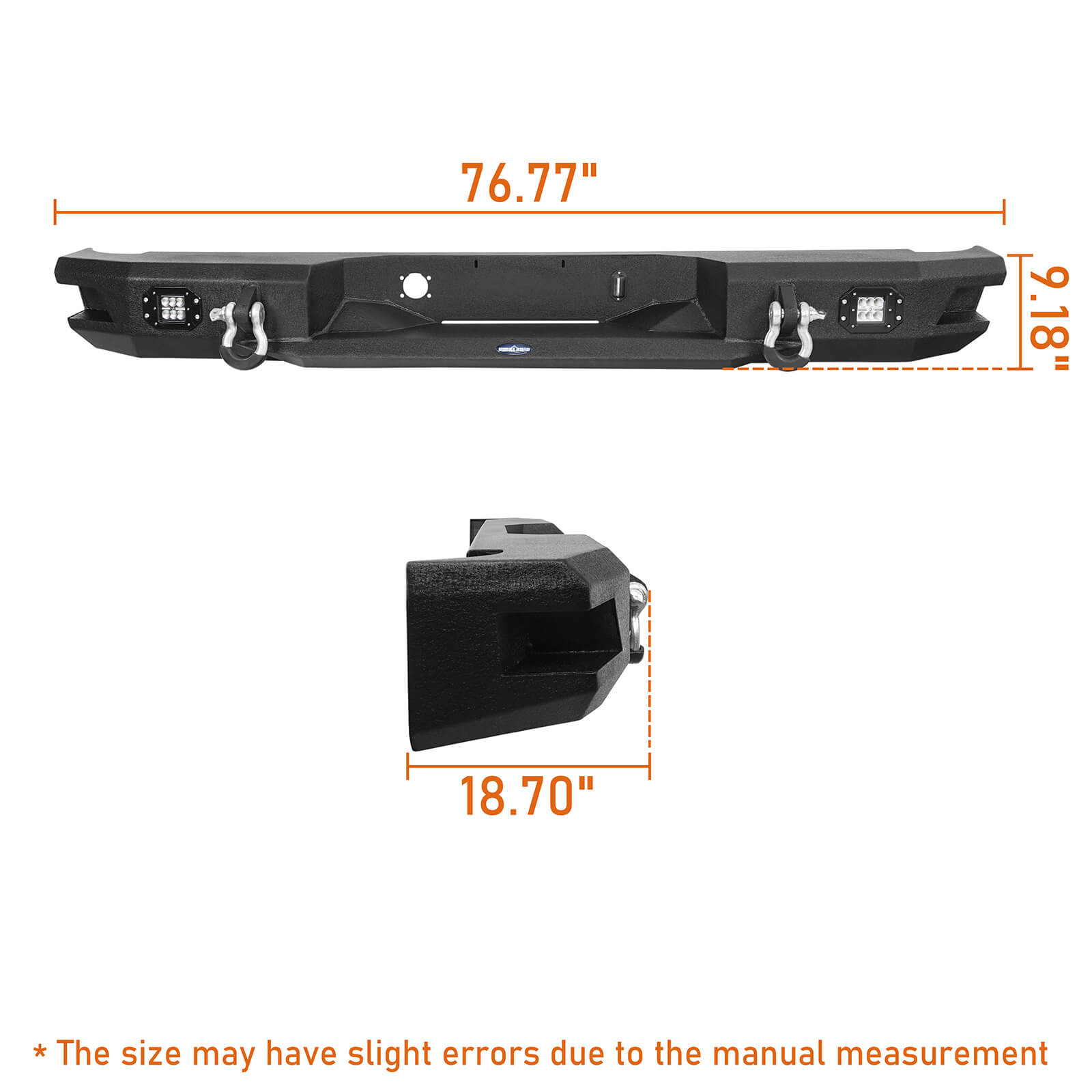 - Heavy-Duty Steel Construction: 11-Gauge(1/8 inch) for the Bumper Main Body, 8-Gauge(11/64 inch) Steel for the Mounting Structure Plate, and Mounting Brackets