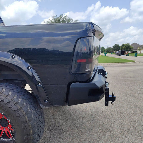Rugged Build Quality. The bumper is mainly built from high-grade 11-gauge(1/8 inch) plate steel for exceptional durability. Fully-welded joins and internal reinforcement give this Dodge Ram bumper assembly exceptional structural integrity. Finally, this Ram Rear bumper receives a durable textured black powder coat finish for corrosion protection and a classy look.