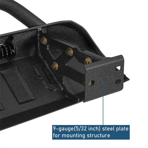 - Constructed from heavy-duty 11-gauge (1/8-inch) steel for the bumper main body, 1.97"×0.06" steel tube for the hoop guard, and 9-gauge (5/32-inch) steel for the mounting structure