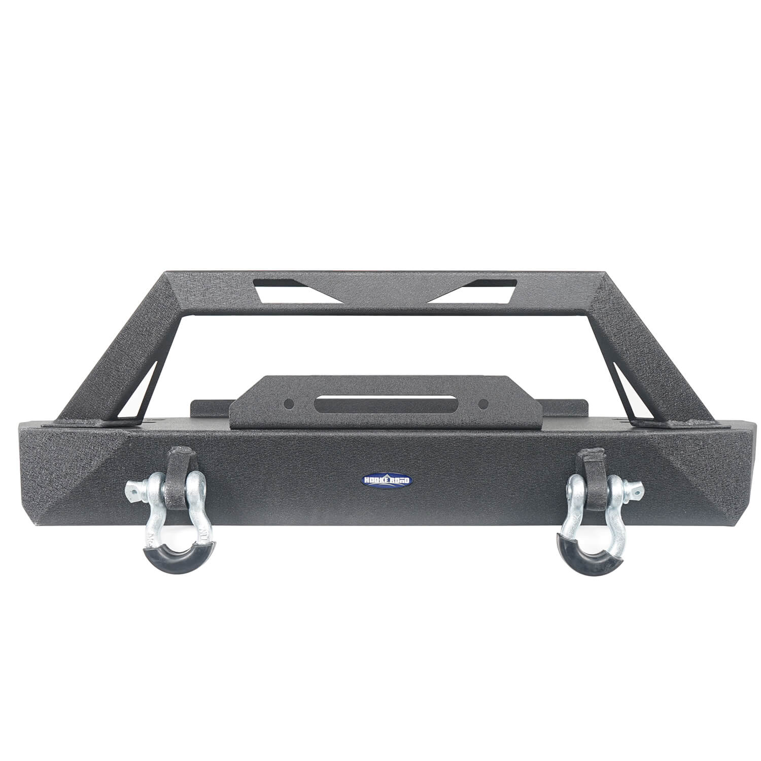 Bumper weight: about 55 lbs; winch plate for up to 12,000 lbs; High strength D-ring mounts w/D-rings, 9,500 lb rated D-Rings; D-rings w/ rubber rings to provide extra protection against abrasion; Heavy-duty 8-gauge(11/64 inch), 11-gauge(1/8 inch) Maximum steel construction; Angled hoop for radiator protection;