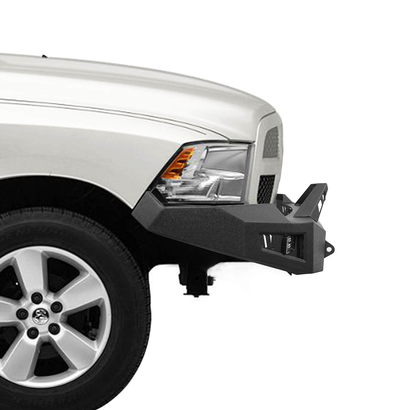 Protects Against Road Hazards. Make your off-road drives a lot safer by gearing your truck up with this Dodge Ram 1500 Full Width Front Bumper. With this installed, your truck's front end won't easily sustain damages since this Full Width Front Bumper effectively deflects road debris with its strong build. Furthermore, adding this to your truck lets it sport a more aggressive stance, making it stand out from the crowd. There are 4 LED spotlights that provide adequate lighting at night. You could also add another 22-inch LED light bar(Not Included) to achieve a super bright view.