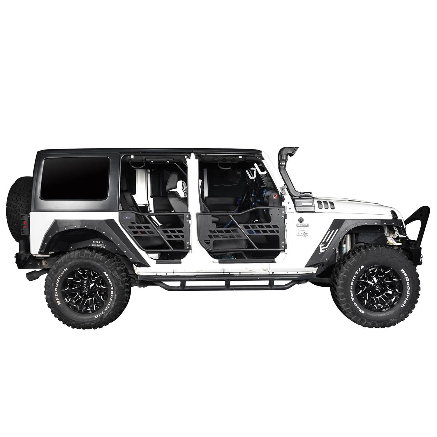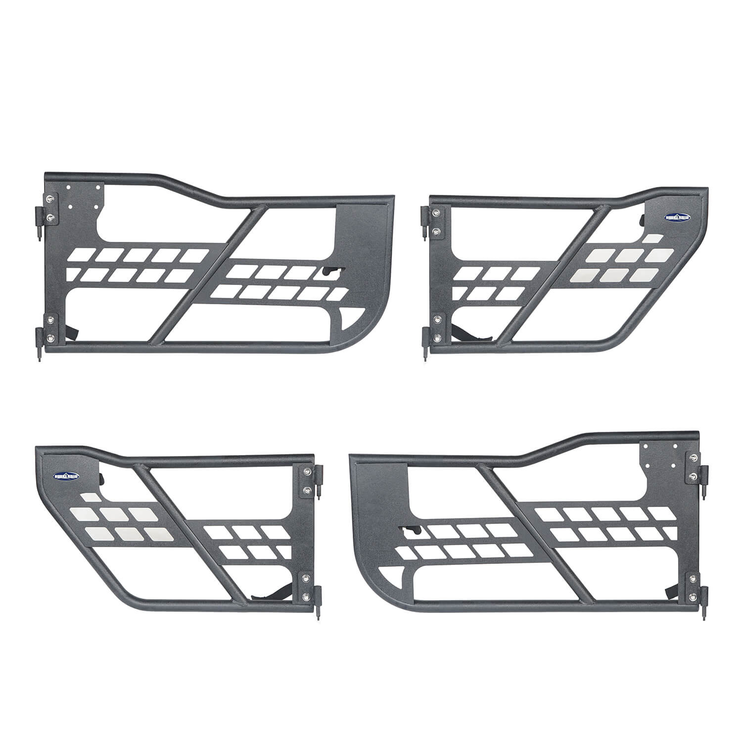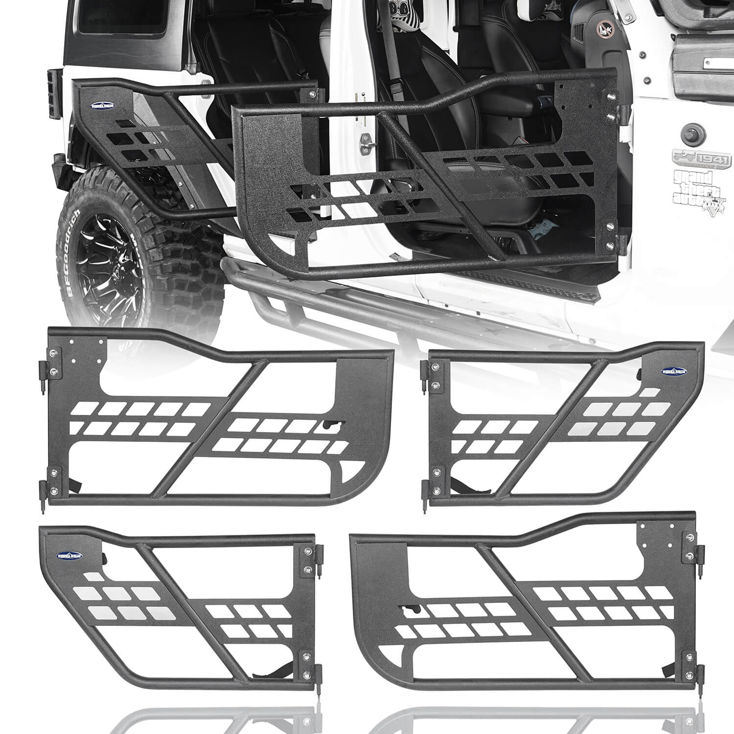- FRONT & REAR TUBULAR DOORS - These tubular doors offer open-air ventilation for a true off-road experience;It is intended for off-road use only. It is not designed as a safety restraint device Engineered to fit OE hinges with a factory style door lock assembly and then finished with a textured black powder coating, these doors were built to see action;Warning;This product is intended for off-road use only. It is not designed as a safety restraint device