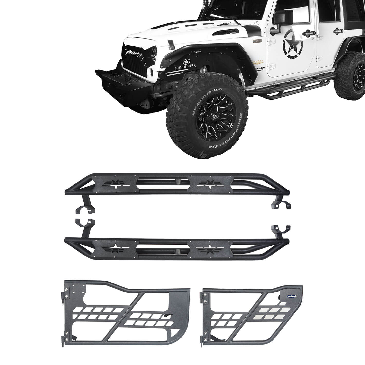 Running Boards 4 Door & Tubular Half Doors Combo(07-18 Jeep Wrangler JK)-LandShaker