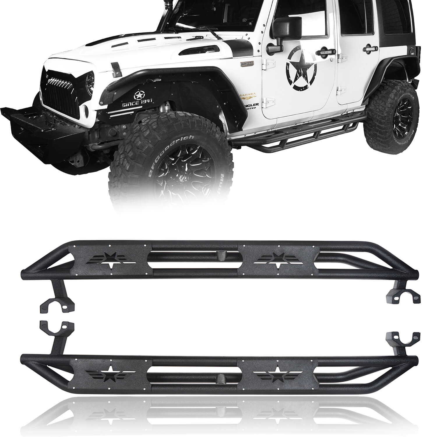 - 1 x Jeep Wrangler Side Steps (Left & Right Side Included)