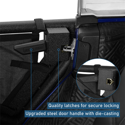 High-Strength Build. Uses only the best and premium-quality materials to manufacture these trail doors. Each door features a thick steel tube construction that’s guaranteed to withstand the most demanding off-road conditions. These are then finished with a heavy-duty powder coat to make sure that the inner surface is always shielded against corrosion and rust. The shade skins are constructed of durable Polyester fabric mesh.