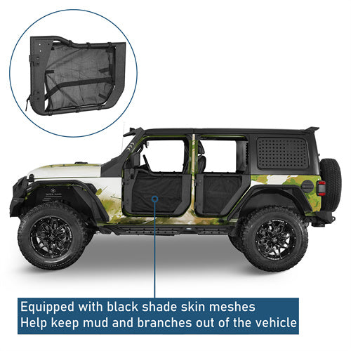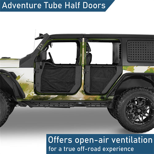 Adventure Tube Half Front & Rear Doors w/ Black shade skins For 2018-2025 Jeep Wrangler JL 4 Doors/ Gladiator JT - Landshaker4x4