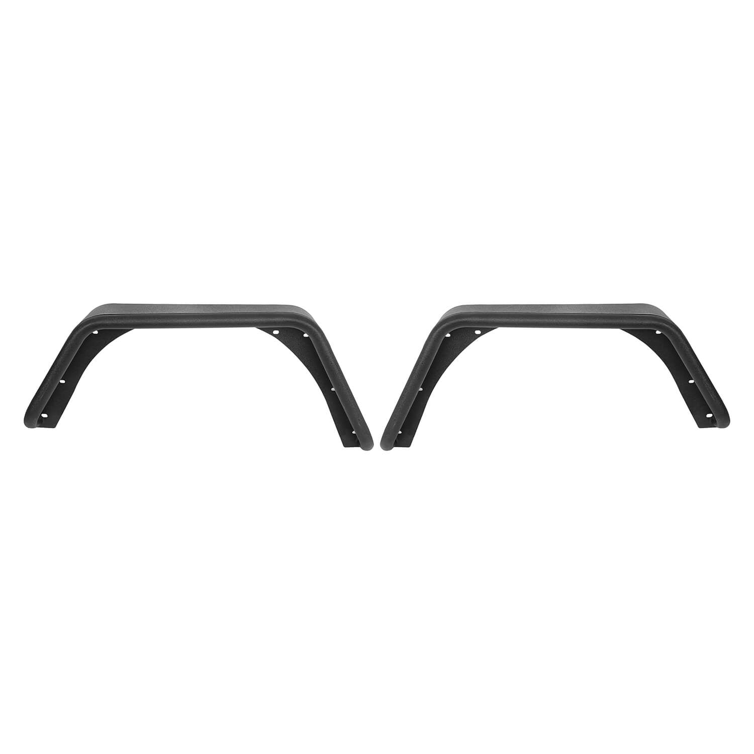 Rugged Look. Your 1997-2006 Wrangler's appearance will greatly benefit from Black Textured Tube Fenders with 4.3 in Flares. These fenders are specifically designed to give your Jeep that off road, rugged look that every Jeep driver works to achieve. Aggressively strong so that they can protect your Jeep from harm, these fenders offer tubular armor that guards against any obstacles on and off road. Included with the fenders are 4.3"" fender flares that give your Jeep that eye-catching design you've been searching for.