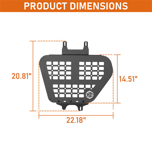 Solid Construction. The Rear Window Molle Panels feature a robust 14-gauge (5/64 inch) steel plate construction, providing exceptional strength and durability for demanding use. Its black powder coat finish not only enhances corrosion resistance but also adds a sleek, rugged appearance that withstands scratches, impacts, and harsh environmental conditions, ensuring long-lasting protection and a professional, high-quality look.