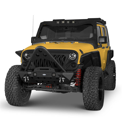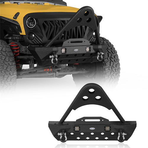 Stubby Front Bumper w/Stinger & Winch Plate Mount w/ 2X 18W LED Spotlight(Jeep Wrangler JK)-LandShaker