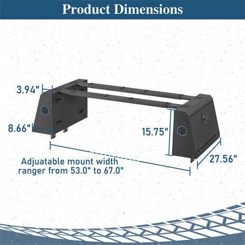 Direct Bolt-on Installation. Installation is simple and straightforward with a bolt-on design and all necessary hardware included. The adjustable mounting system accommodates a range of truck bed sizes, with a width range of 53.0" to 67.0", ensuring a secure and tailored fit. The mounting brackets work with factory rail system or non-rail system models. Basic hand tools are required. Installation typically takes about 1 hour to complete.