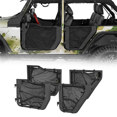 Tube Half Front & Rear Doors w/ Black shade skins For 2007-2018 Jeep Wrangler JK 4 Doors - Landshaker4x4